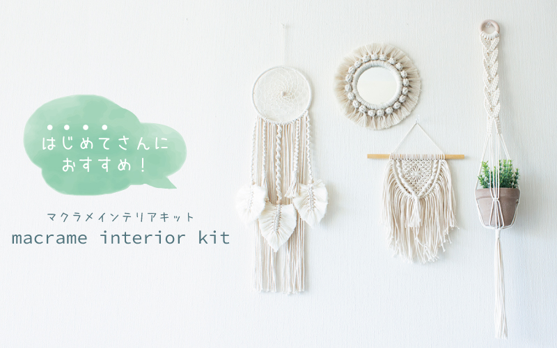 そんなマクラメはじめてさんに最適な、材料が全て揃った「マクラメインテリアキット」が発売となりました!