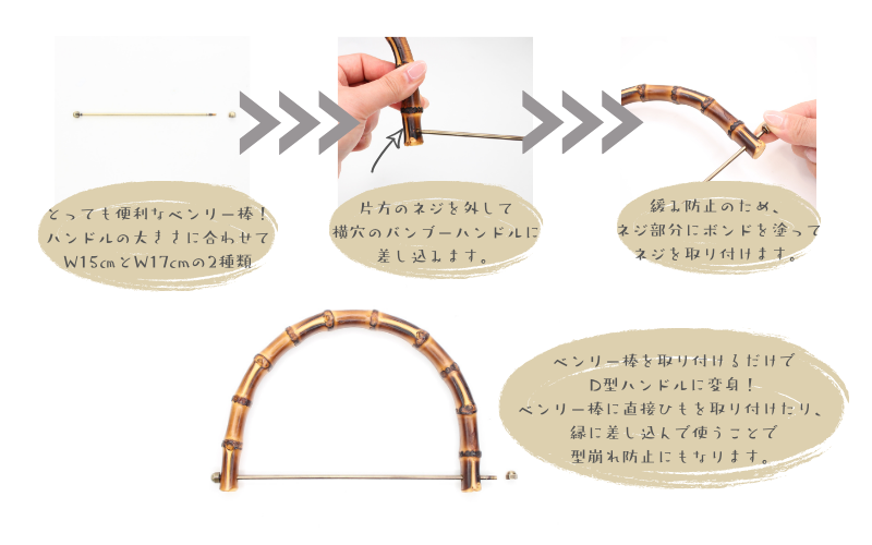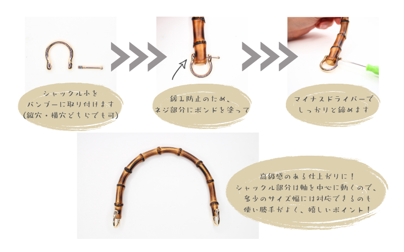 持ち手にバンブーを使用することで上品で高級感のある作品をつくることができます。